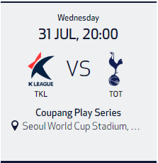 토트넘의 프리시즌 한국에서의 경기는 서울 상암올림픽 경기장에서 실시합니다.