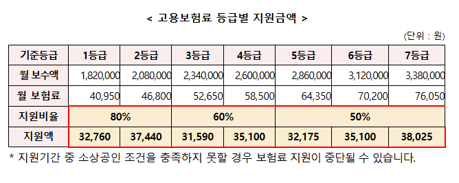 : 납부한 고용보험료의 50 ~ 80 %를 최대 5년(60개월) 까지 지원